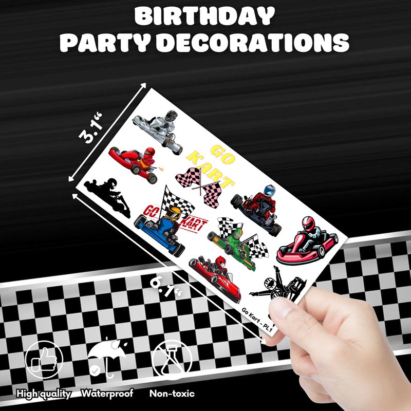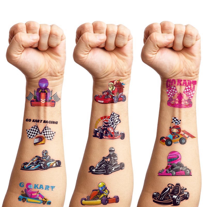 - Widely used: Go Kart Car Karts Race Car Checkered Flag Racing Temporary Tattoos pieces are suitable for many occasions such as birthday party supplies, party decorations, party favors, party bags, DIY decorations, pool and the beach or gift. Temporary tattoos are the best party favors and goodie bags fillers ever for any kind of celebration!
