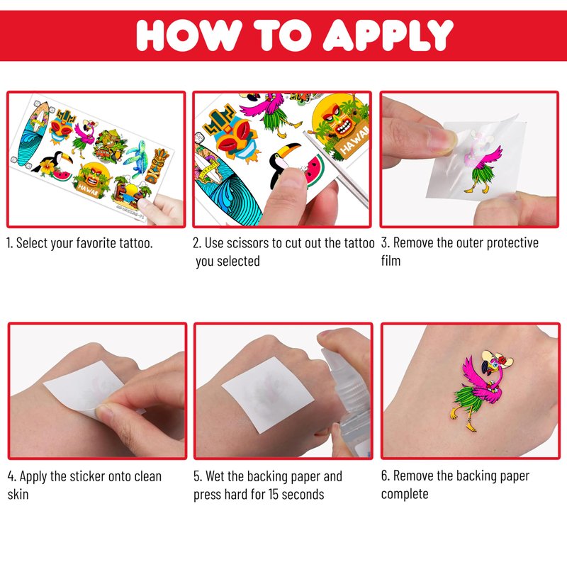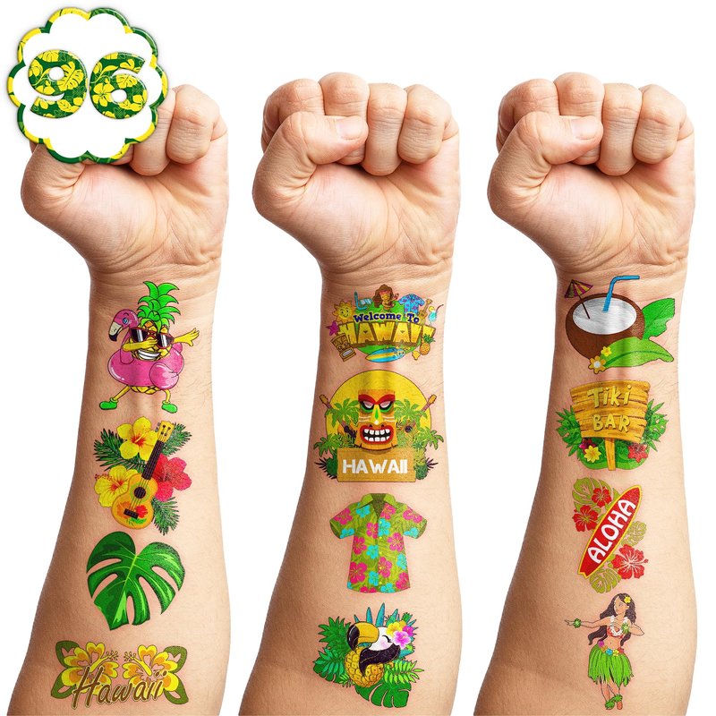 - 🌺HAWAIIAN LUAU PARTY: The party is sure to come alive with these Hawaiian-inspired temporary tattoos! Choose from a variety of breathtaking, vibrant designs, such as Hawaiian, summer, beach luaus, and more. Invest now in tattoos to add excitement to your event!