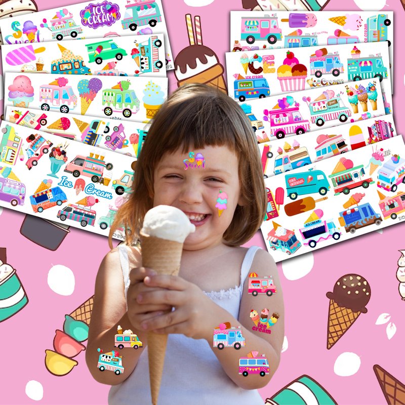 - 🍧ICE CREAM PARTY DECORATIONS: Your party will look amazing with these temporary tattoos of ice cream trucks! Select from an array of amazing designs, such as vibrant, adorable, and colorful pictures of ice cream trucks. Invest to add excitement to your party event!