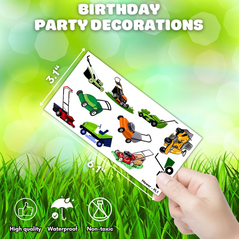 - Widely used: Lawn Mower Tractor Lawnmower Grass Farm Temporary Tattoos pieces are suitable for many occasions such as birthday party supplies, party decorations, party favors, party bags, DIY decorations, pool and the beach or gift for people and rewards.Temporary tattoos are the best party favors and goodie bags fillers ever for any kind of celebration!