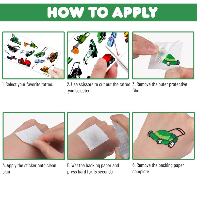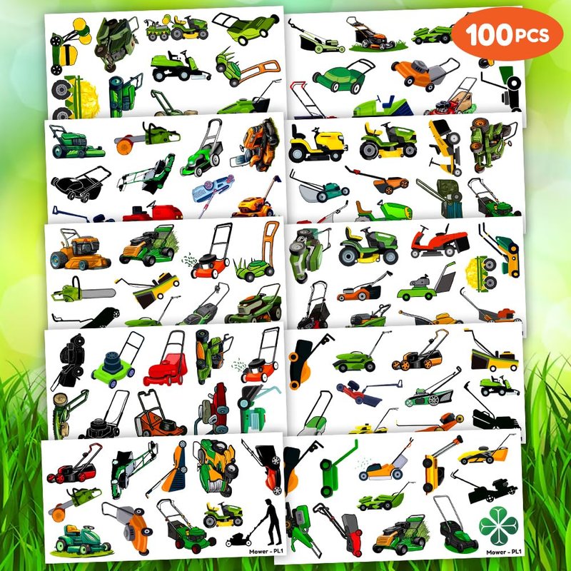 - Pattern rich: Lawn Mower Tractor Lawnmower Grass Farm Temporary Tattoos include 10 Sheets 100 PCS, the size of each sheet is 6.1 * 3.1 inches. Easy to share,even if a lot of people's parties, you can have a different tattoo with others.These adorable tattoos will keep you and your little ones – and their friends – occupied for a while.