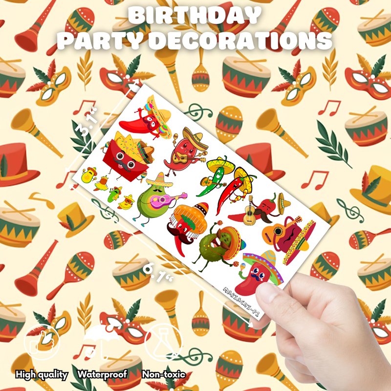 - 🌶️MEXICAN PARTY DECORATIONS: With these temporary mariachi tattoos, your party will look fantastic! Choose from various stunning designs, including lively, cute, stylish, and colorful images of Mexican Mariachi. Invest to make your party event more exciting!