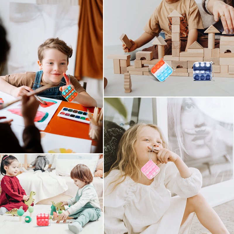- 🔹 High Quality Materials: The Mini Pop Keychain Fidget toys made of high-grade Silicone materials, you can play it with children with complete confidence, it will not cause any harm to children, because it is very soft and feels comfortable.