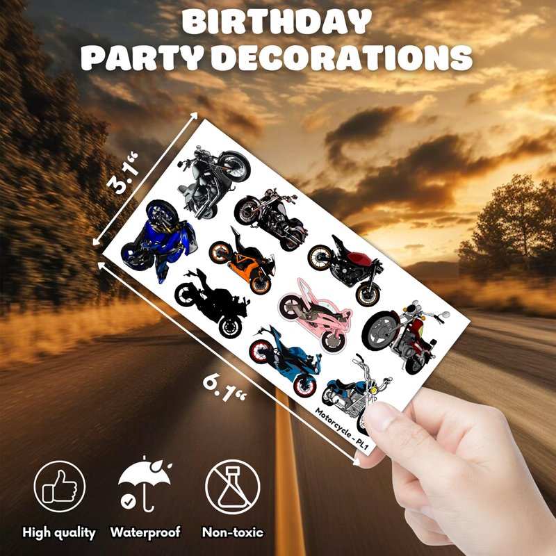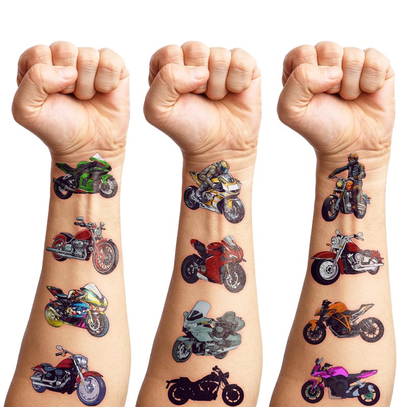 - Widely used: Motorcycle Dirt Bike Motocross Racing Rider Biker Temporary Tattoos pieces are suitable for many occasions such as birthday party supplies, party decorations, party favors, party bags, DIY decorations, pool and the beach or gift. Temporary tattoos are the best party favors and goodie bags fillers ever for any kind of celebration!