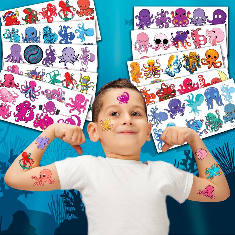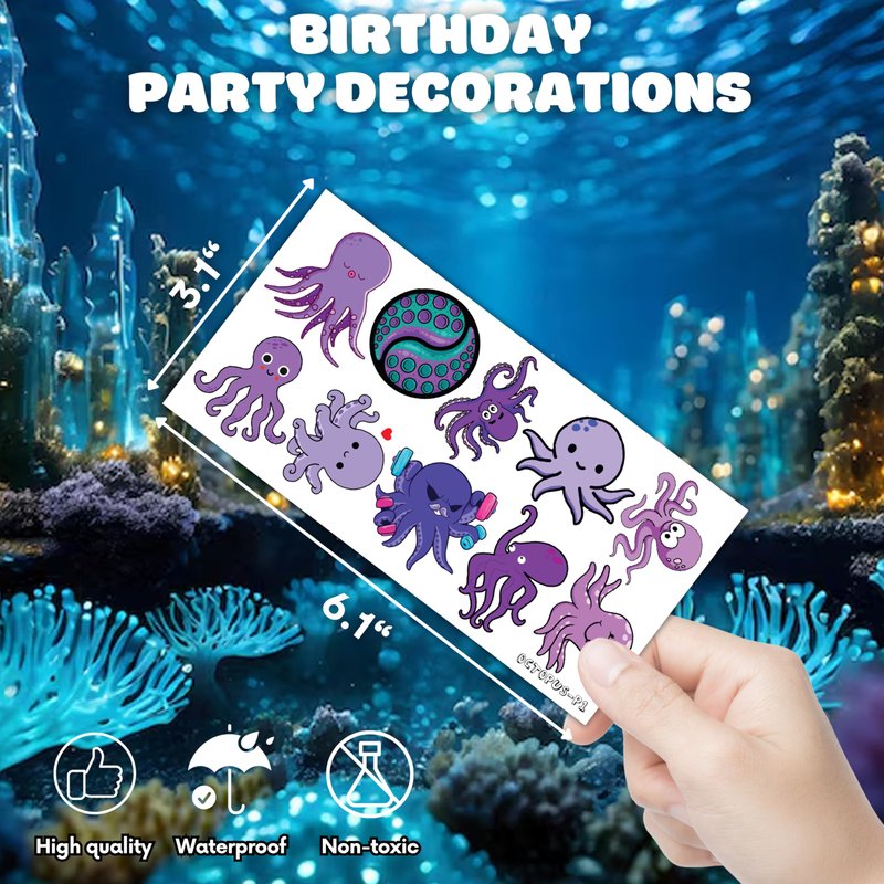 - 🐙OCTOPUS PARTY DECORATIONS: These adorable temporary tattoos can give your OCTOPUS birthday celebration a stylish touch! Select from a variety of striking designs, including sea, ocean, and OCTOPUS. Make your purchase right away to add even more charm to your event!