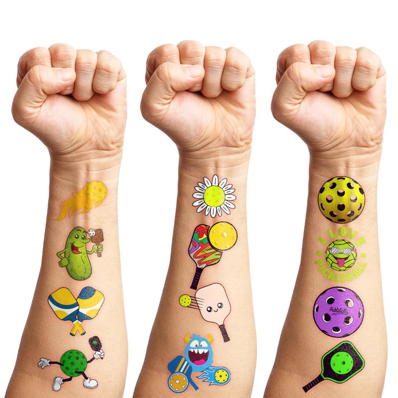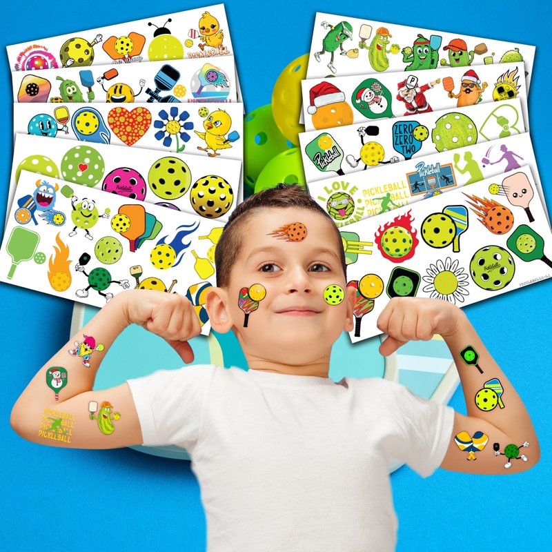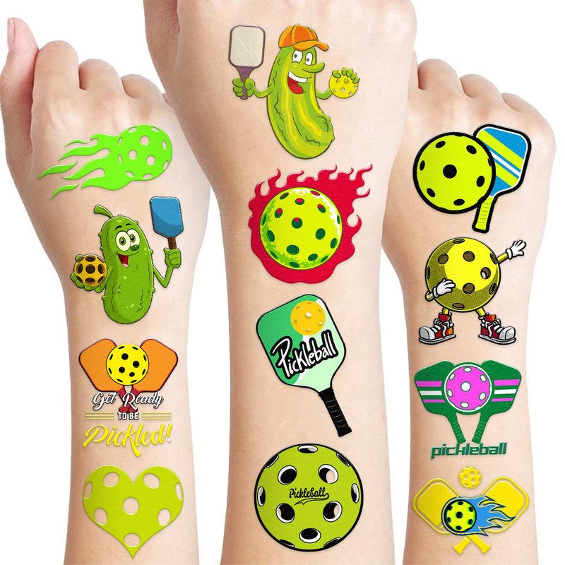 - 🎾 FUN GIFT FOR PICKLEBALL BIRTHDAY PARTY DECORATIONS SUPPLIES: PICKLEBALL TATTOOS themed party, outdoor parties, including pickleball party, birthday celebrations, sporting events, pickleball birthday party, birthday parties, school rewards and other party events. PICKLEBALL are also interesting and lovely gifts for your children. Complement your unique collection with a pickleball tattoo!