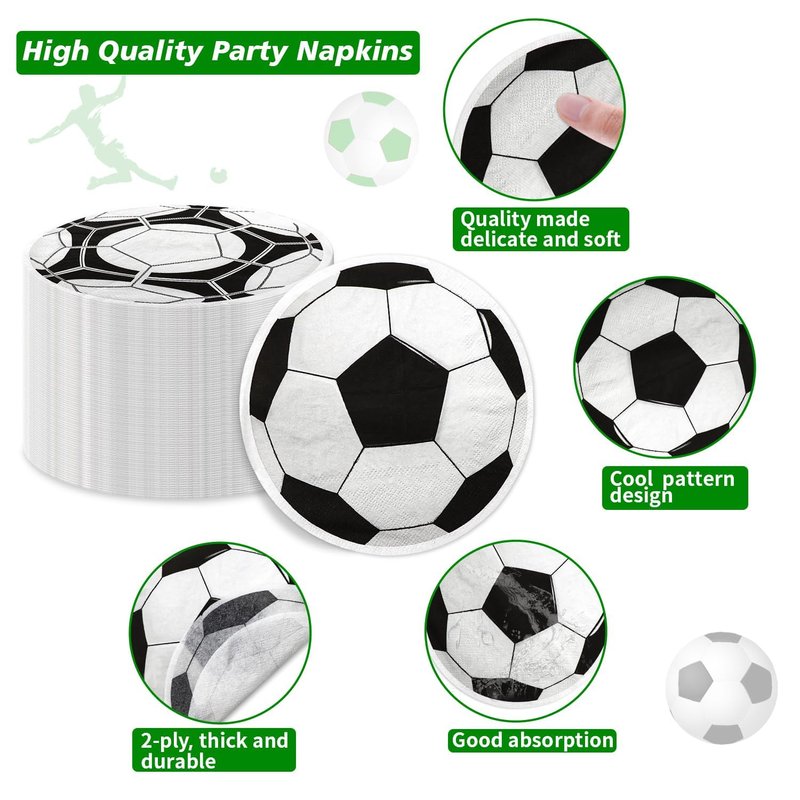 - 【Soft and Practical to Use】: Consisting of quality 2 layer paper material, these soccer party supplies are soft, disposable and absorbent, not easy to tear when in use; You can clean them easily, just need to throw them away after finishing using them.
