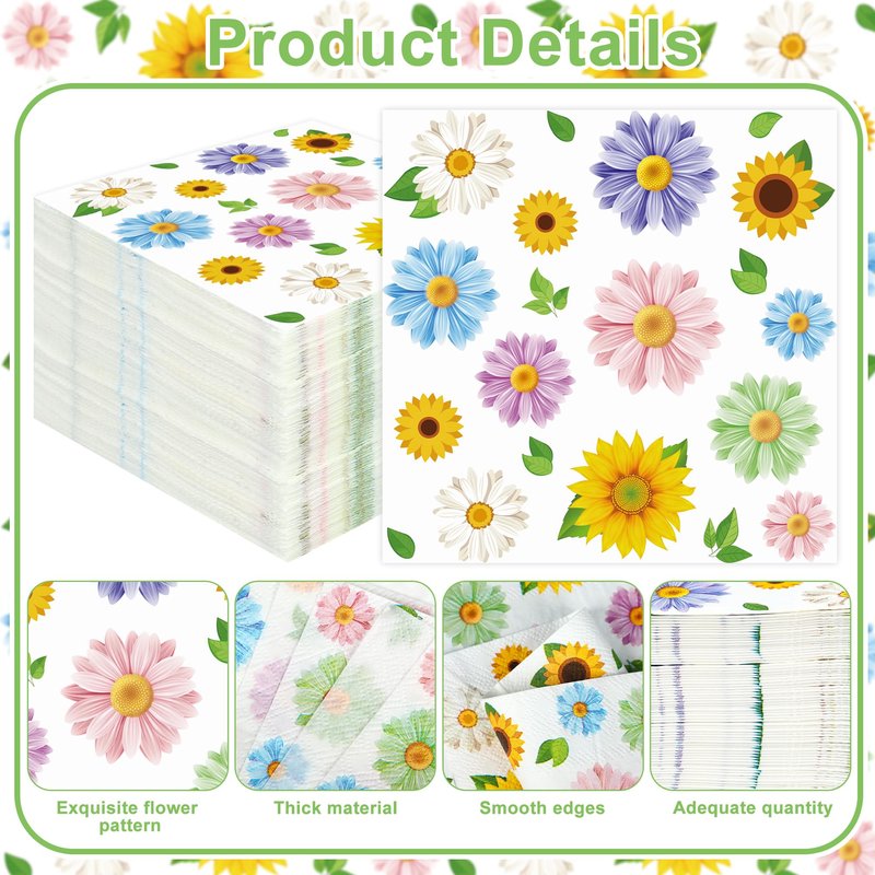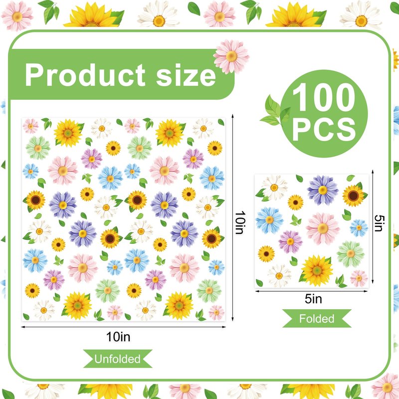 - What’s in the package: you will receive 100 pieces of spring floral cocktail napkins in our package, and the colorful flowers are printed on the napkins; the wonderful design and sufficient quantity will meet your most needs.