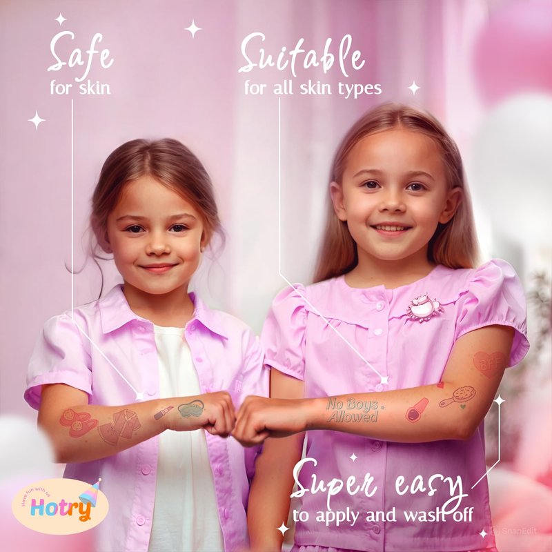 - Party favours for everyone: don’t think our product is just slumber party supplies for girls, this set will delight people of all ages; if you're looking for temporary tattoo kids & adults will adore - this is the right one
