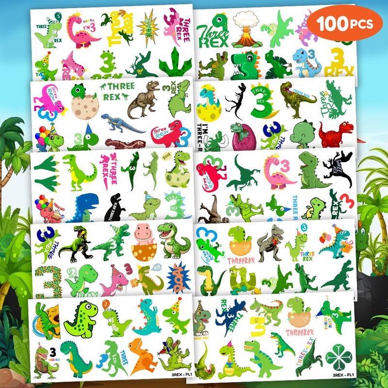 - Widely used: Three Rex 3 Rex Tyrannosaurus T- Rex Dinosaur Temporary Tattoos pieces are suitable for many occasions such as birthday party supplies, party decorations, party favors, party bags, DIY decorations, pool and the beach or gift. Temporary tattoos are the best party favors and goodie bags fillers ever for any kind of celebration!