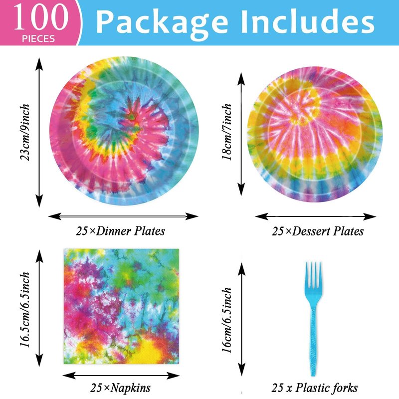 - 【Tie-Dye Party Table Settings】These Tie-Dye party tableware kit can serve 25 guests, an enough quantity for a normal Tie-Dye theme big party. These Tie-Dye party decoration kit will make your table settings look fantastic and all your guests will be happy