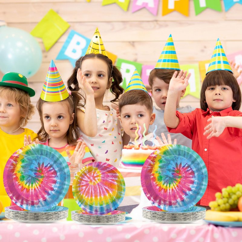- 【Tie-Dye Birthday Party Design】 Except for the fork, this Tie-Dye party tableware set is all designed in iconic Tie-Dye patterns. Decorating your insect party with these tableware kit can make your party full of the Tie-Dye party atmosphere