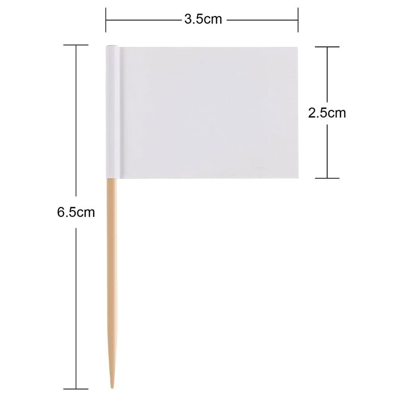 - Measurement: the white flag is 3.5 x 2.5 cm/ 1.38 x 0.98 inch in size; And the mounted toothpick is 6.5 cm/ 2.56 inch in length, suitable sizes for your different applications