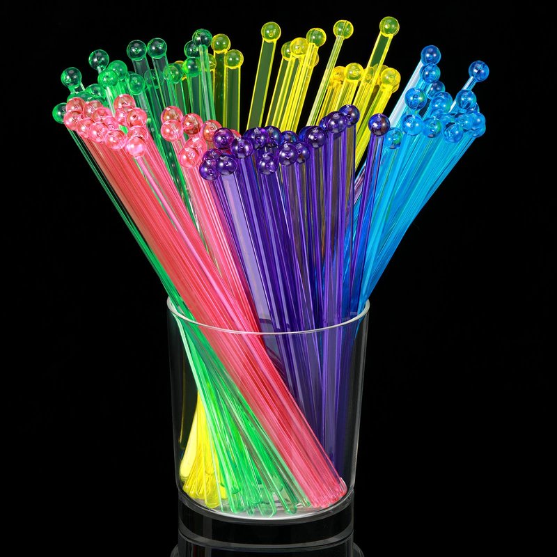 100 Pieces Disposable Plastic Round Top Crystal Swizzle Sticks (MultiColor)