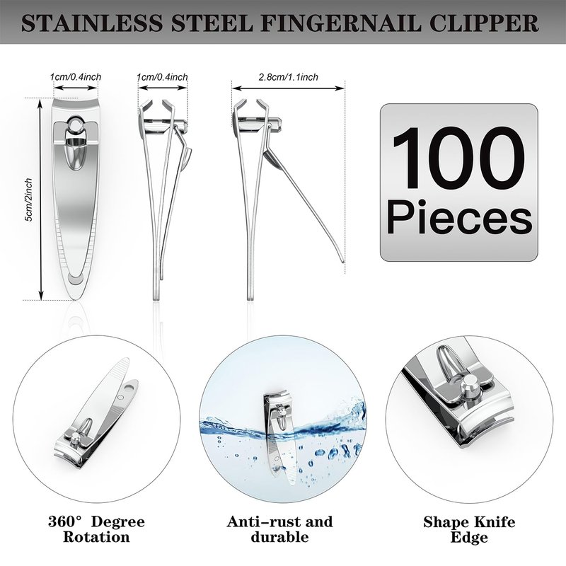 - Nail clippers package content: you will receive 100 pieces nail clippers, these lightweight and convenient nail clippers can be placed at many corners, such as backpack, drawer, bookcase, home, car, office and more, which can be applied for a long time, they're so sufficient that you can arrange them freely, give them away or for your own use, and you can share them with your family。