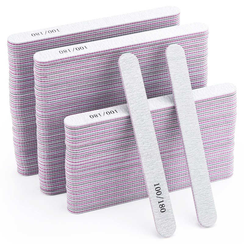 100 Pieces Nail Files 100/180 Grit Double Sided Emery Board Reusable Buffering Files for Natural Nails and Acrylic Nails