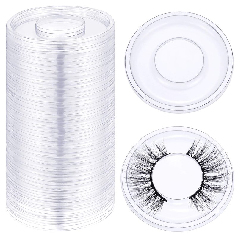 100 Pieces Round Eyelash Tray Holder Plastic Eye Lash Trays Lid for False Eyelash Storage Case Empty Holder Box Packaging Box Cosmetic Container (Transparent)