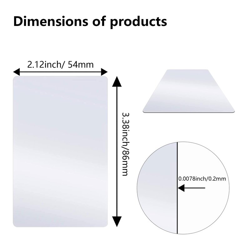 - 【Package Including】One pack contains 100 pieces blank sublimation metal business cards which can be sublimated both sides, the thickness is 0.2 mm, the size is 3.38 x 2.12 inch, same size as credit card.