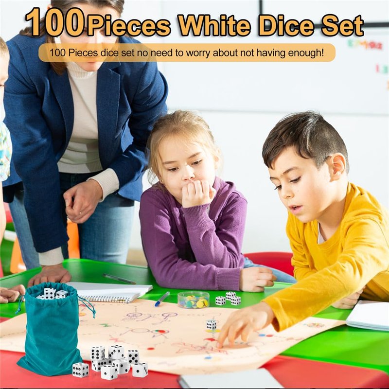 - 【100 Dice Set】100 pack bulk white dice, each with clear, hand-drawn black dots for easy reading on the 6 sided dice. Perfect for various gaming scenarios and more cost-effective when purchased in bulk. No need to worry about running out of dice or losing them - enjoy your games to the fullest!