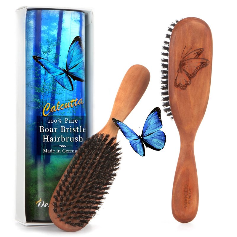 - 100% Boar Bristle Hair Brush: The Calcutta brush, with firm bristles from wild boars in India’s highlands, is ideal for normal or finer hair types. Named after the port city, its stiffer bristles enhance hair health and shine, perfect for everyday grooming.