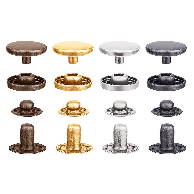 - Snap fasteners kit: comes with 100 sets snap fasteners in 4 colors (gold, silver, bronze and gunmetal), 4 pieces fixing tools, which is enough for you to make a craft and meeting your different needs