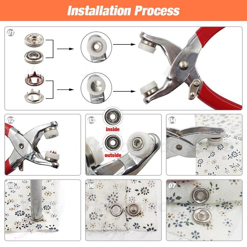 - WHAT YOU GET: The Package Includes 100x Snaps Buttons, 1x Hand Press Pliers, 2x Setting Tool of Snap Fasteners Kit, The Quantity is Enough to Meet Your Daily Needs for You to Choose.