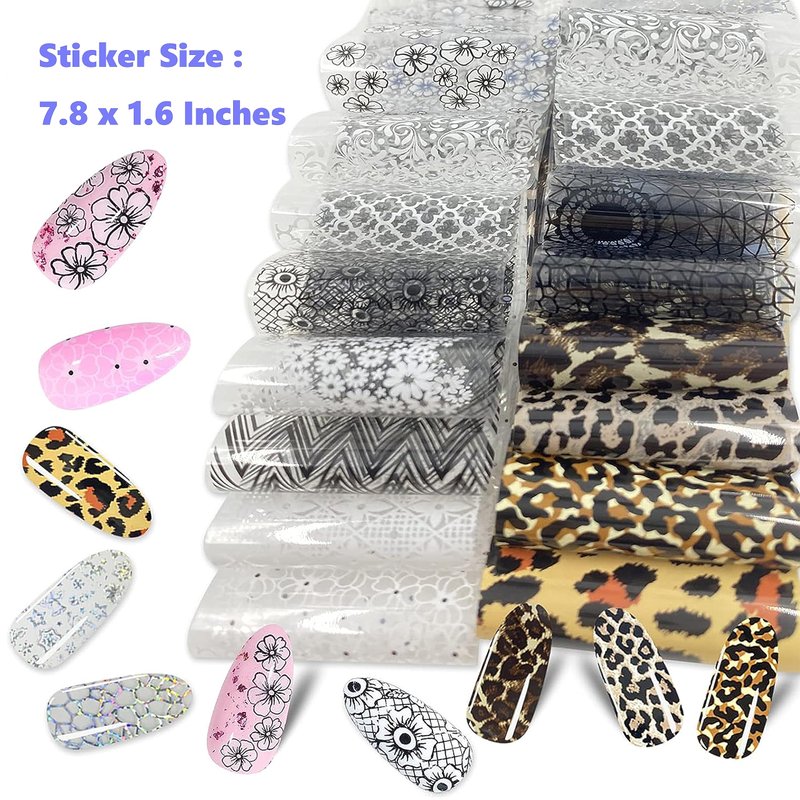 - MEET YOUR UNIQUE DECORATION NEEDS✨✨✨ Nail art stickers include various patterns such as flowers, starry sky, mandala elements, leopard print, marble. Nail foil transfer decals are good material to decorate natural nails, acrylic nails, artificial nails and more. In addition, they are also suitable for decorating your phone cases, glasses, photo frames or other DIY craft items. Different styles and designs nail art transfer stickers offer more choices to you and satisfy your different needs.