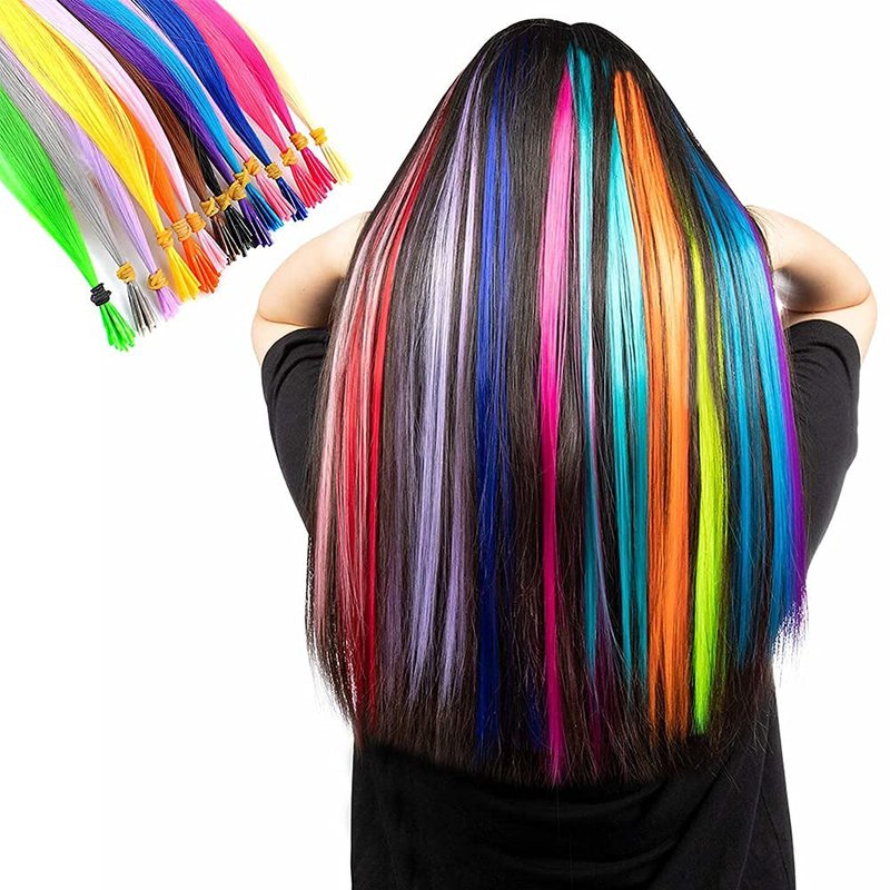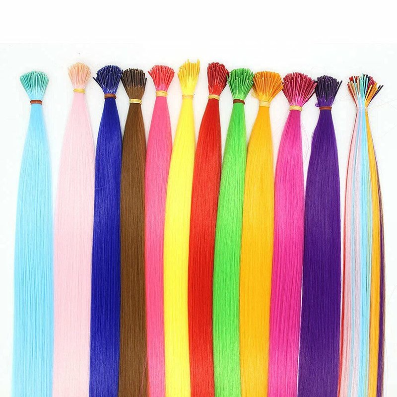 100 Strands 20" Party Colors Hair Extensions Kit I-Tip Fusion Long Straight Hairpieces Synthetic Heat Resistant Highlight Feather Micro Ring Hair Accessories, Include 100 Microbeads with Hook Tool