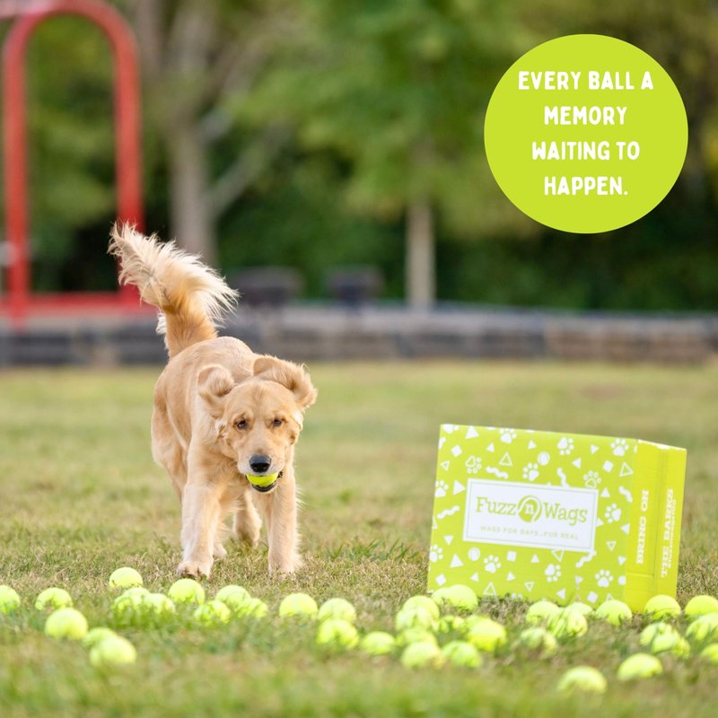 - 💚 THE SPECIAL BOND OF FETCH: TRUST, LOVE, AND SHARED EXPERIENCES: Your shared experience of fetch satisfies the natural deep rooted canine need for companionship and meaningful social interaction. Tennis ball felt absorbs smells, which to dogs is like a photo bank of all the places they have been with the ball and the and the hands that have touched them. A box of Fuzz n Wags is more than just 100 balls. It's a box of memories and love waiting to unfold.
