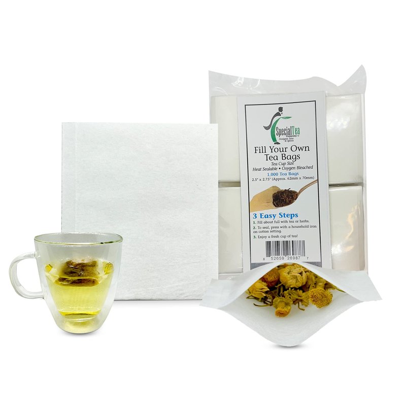 1000 Empty Tea Bags 2.5” x 2.75” White Compostable, These Heat Sealable Tea Infuser for Loose Tea Herbs are Organic Disposable Tea Strainer Bags made of Wood (pulp) Fibers