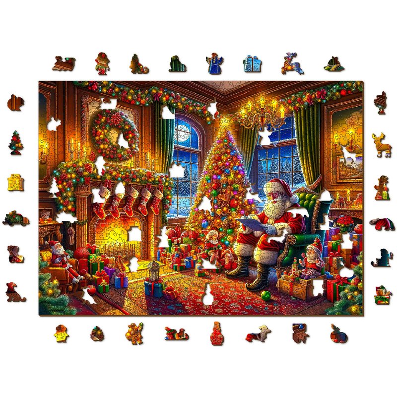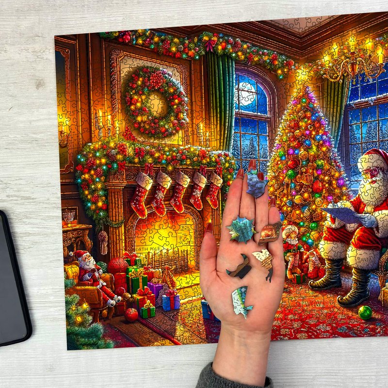 Immerse yourself in the festive spirit with "The Magic of Christmas Eve" 1000-piece wooden puzzle. This captivating Christmas puzzle showcases a heartwarming scene of Santa on Christmas Eve, perfect for bringing the magic of the holidays into your home. With a completed size of 21 1/4 inches by 15 1/2 inches, this puzzle is ideal for holiday decorating or as a thoughtful gift. This Christmas puzzle is perfect for adults looking for a relaxing and engaging holiday activity. Whether you're sharing the joy with family or indulging in a peaceful winter evening alone, this 1000-piece Christmas puzzle offers a delightful challenge that enhances the warmth of the season. Made with high-quality craftsmanship in the EU, this winter puzzle features durable wooden pieces that fit together perfectly, ensuring a satisfying assembly experience. The vibrant colors and intricate details of this Christmas puzzle make it a joy to complete and a beautiful piece to display. This 1000-piece holiday puzzle for adults is more than just a pastime—it's a tradition waiting to be started. Whether you're a seasoned puzzler or new to the world of Christmas puzzles, "The Magic of Christmas Eve" will quickly become a favorite in your collection of Christmas puzzles 1000 pieces. Key Features: High-Quality Material: Crafted from premium wood in the EU, ensuring durability and a high-quality puzzle experience. Magical Christmas Scene: Features a detailed and vibrant Santa on Christmas Eve, perfect for holiday décor. Perfect Size for Display: The completed puzzle measures 21 1/4 inches by 15 1/2 inches, making it ideal for framing. Designed for Adults: This Christmas puzzle for adults offers a challenging yet enjoyable experience, perfect for winter evenings. Great Holiday Tradition: Start a new holiday tradition with this 1000 piece Christmas puzzle that will bring joy year after year. Bring home "The Magic of Christmas Eve" and experience the joy of 1000 piece holiday puzzles for adults. Perfect for the Christmas season, this puzzle is sure to become a cherished part of your holiday traditions.