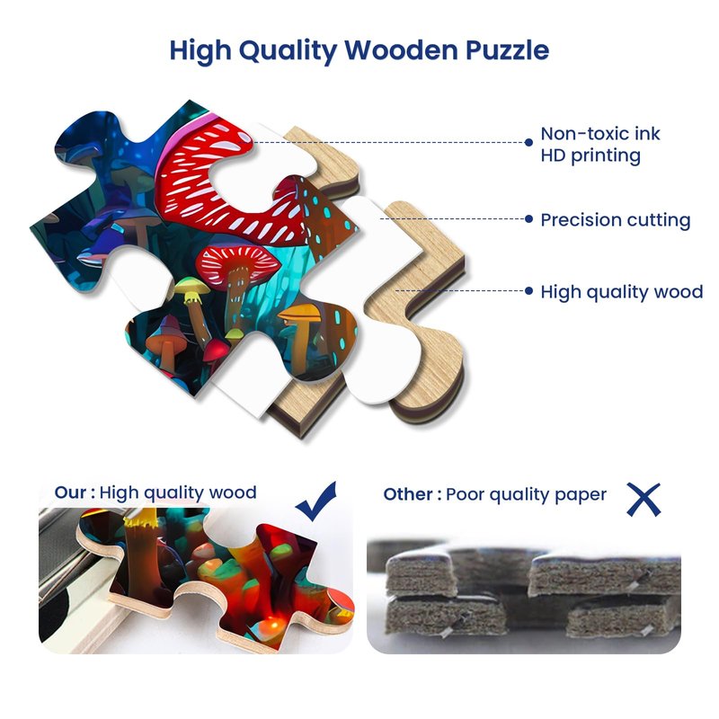 - 🌸[Mushrooms Puzzle]:This jigsaw puzzle highlights the wonder and fascination of the mushrooms world.It is amazing and fantastic,which is definitely a challenge for any puzzle player!