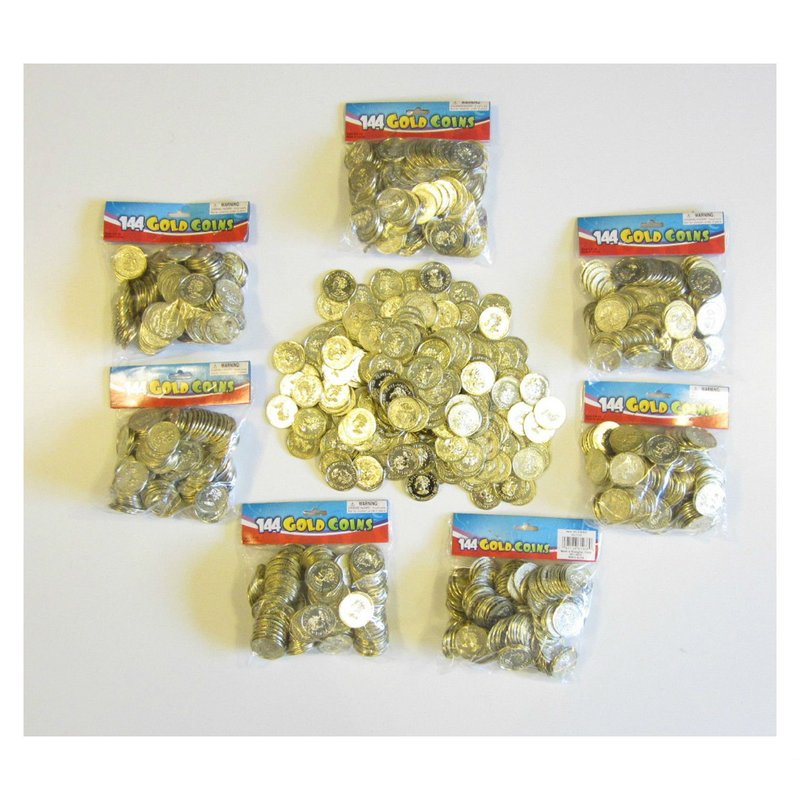 1000 PLASTIC GOLD COINS PIRATE TREASURE CHEST PLAY MONEY BIRTHDAY PARTY FAVORS