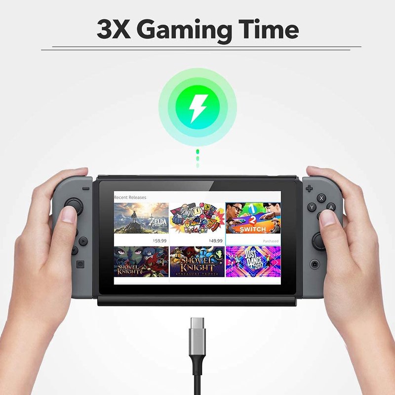It features a 10000mAh battery that can keep your Switch charged through a long flight, road trip, or gaming night.