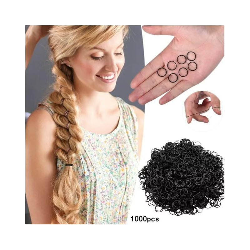 1000PCS Black Hair Bands, Rubber Bands for Hair, Small Hair Ties, Hair Rubber Bands for All Ages to Weave Different Hairstyles Convenient to Carry Small in Size and Light in Weight,Hair Accessories