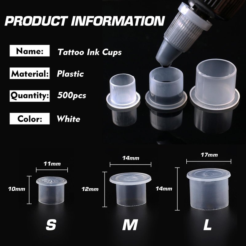 - 【Package and Size】 - Comes with 1000pcs #11mm small tattoo ink cups in a package. Inner Diameter 0.9cm / 0.35inch; Outer Diameter 1.1cm / 0.43inch. Generous amount suitable for beginners and professionals.