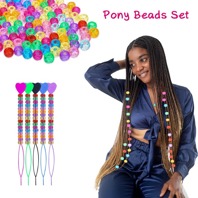 - 【Great Value Set】Our beads for hair braids includes 500pcs 6x9mm glitter pony beads (inner hole size is 4mm), 500pcs elastic rubber bands, 5pcs quick beaders, 1 rattail comb and 2pcs duckbill clips. The quantity is abundant and the styles are diverse, very suitable for kids hair braiding.