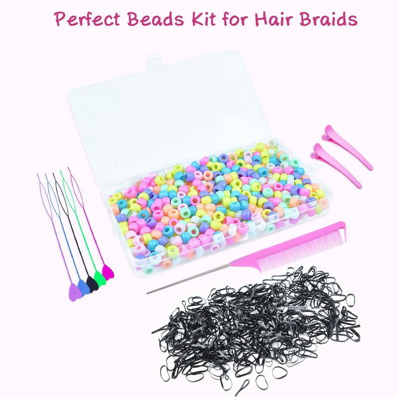 - ❤【GREAT VALUE SET】Our bead set includes 500pcs 6x9mm multi-colored pony beads (inner hole size is 4mm), 500pcs elastic rubber bands, 5pcs quick beaders, 1 rattail comb and 2pcs duckbill clips. The quantity is abundant and the styles are diverse, very suitable for kids hair braiding.