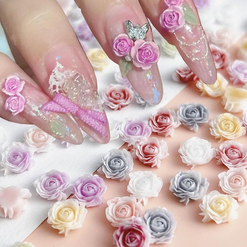 ② 3D carved resin flower nail charms are are the great nail accessories for women.