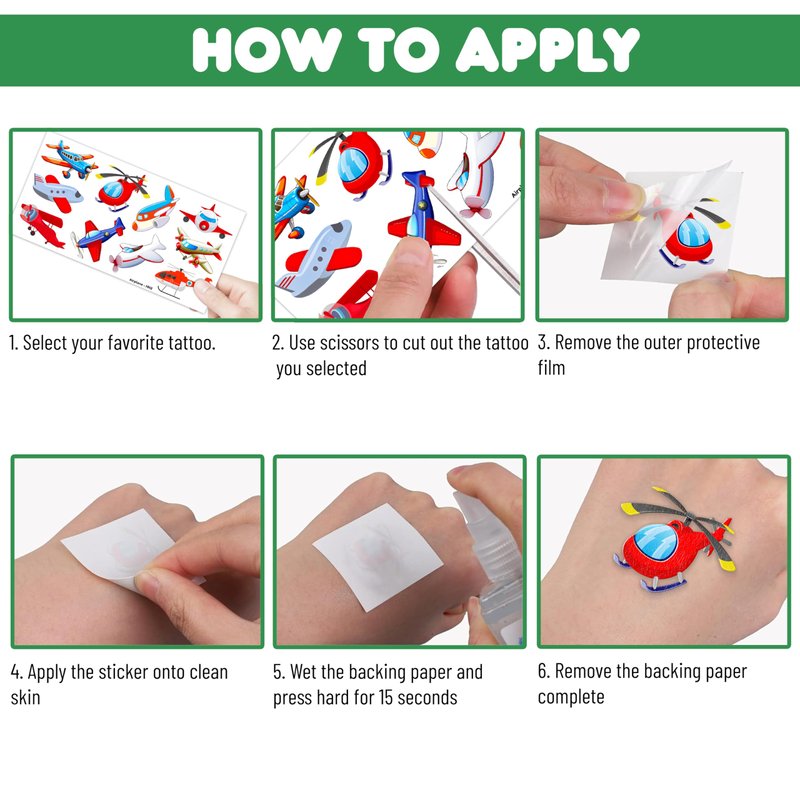 - Pattern rich: Airplane Plane Travel Cool Jet Helicopter Aircraft Temporary Tattoos for Kids include 10 Sheets 100 PCS, the size of each sheet is 6.1 * 3.1 inches. Having a variety of characteristics, shapes and vibrant colors can stimulate your children's imaginations and bring a creative atmosphere to your Plane Party.