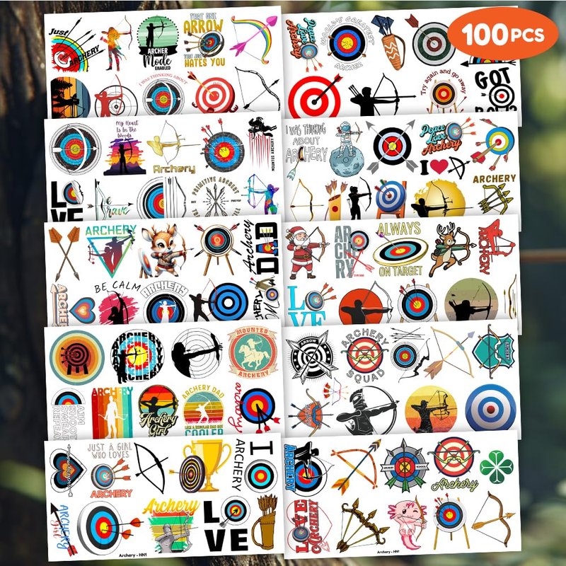 100PCS Archery Temporary Tattoos Stickers Themed Bow Arrow Hunting Birthday Party Favors Decorations Supplies Summer Sports Tattoo Sticker Gifts For Boys Girls Hunter School Prizes Carnival Christmas