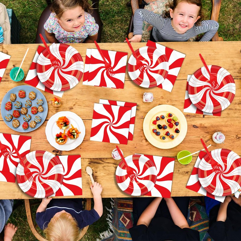 - 【Premium Quality】Our disposable Christmas Peppermint paper plates are made of thick and durable material that is non-toxic, environmentally safe, waterproof and non-harmful to the body; Christmas napkins are tough and soft; the Christmas party supplies printed pattern is clear color printing, not fade.
