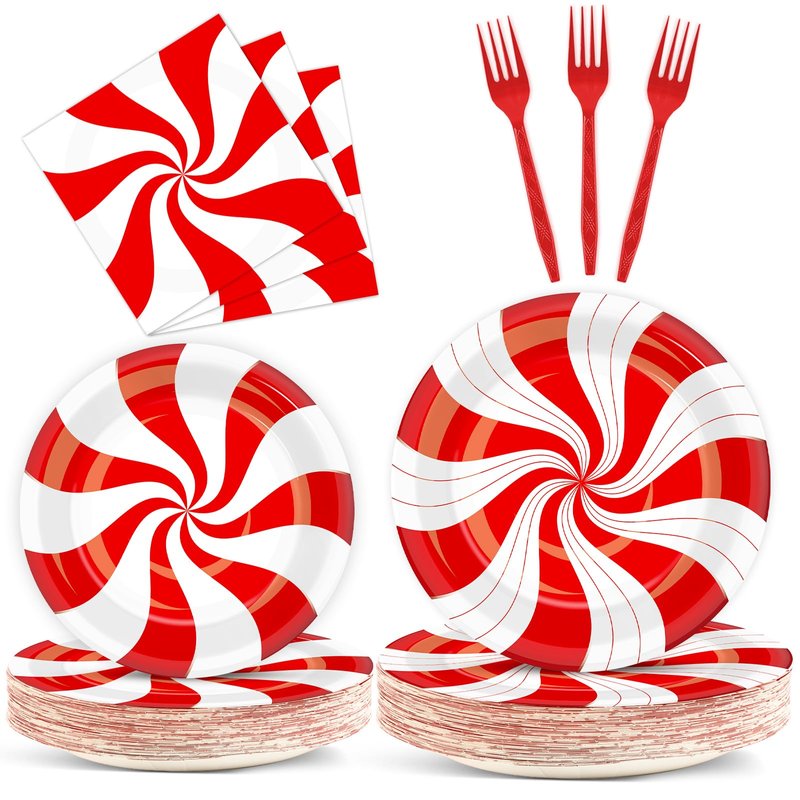 - 【Package Contents】This Christmas theme party supplies can serve 25 people, including 25 pieces plate(9"/23cm), 25 pieces plate(7"/18cm),25 pieces napkin(33cm), 25 pieces forks. The Christmas Candy Cane Striped party favors are enough to decorate your party