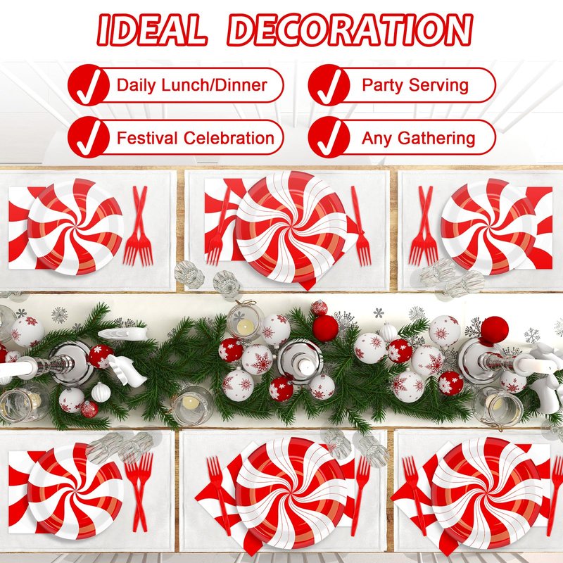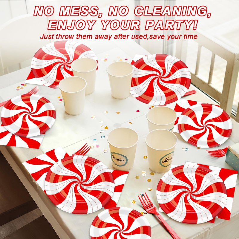 - 【Disposable & Easy to carry】 After using the Christmas Candy Cane Party tableware, you can throw it directly inside the trash can without washing it; You can take the Christmas Candy Cane party Red and White Striped pack anywhere, very convenient.