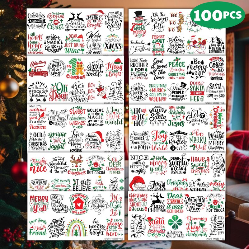 100PCS Christmas Inspirational Cute Temporary Tattoos Christmas Bless Saying, Christmas Words Inspired Holiday Letter Greeting Themed Stickers for Adults Kids Xmas Decoration Birthday Party