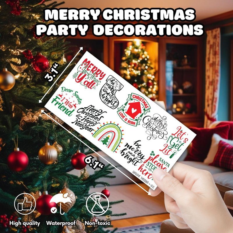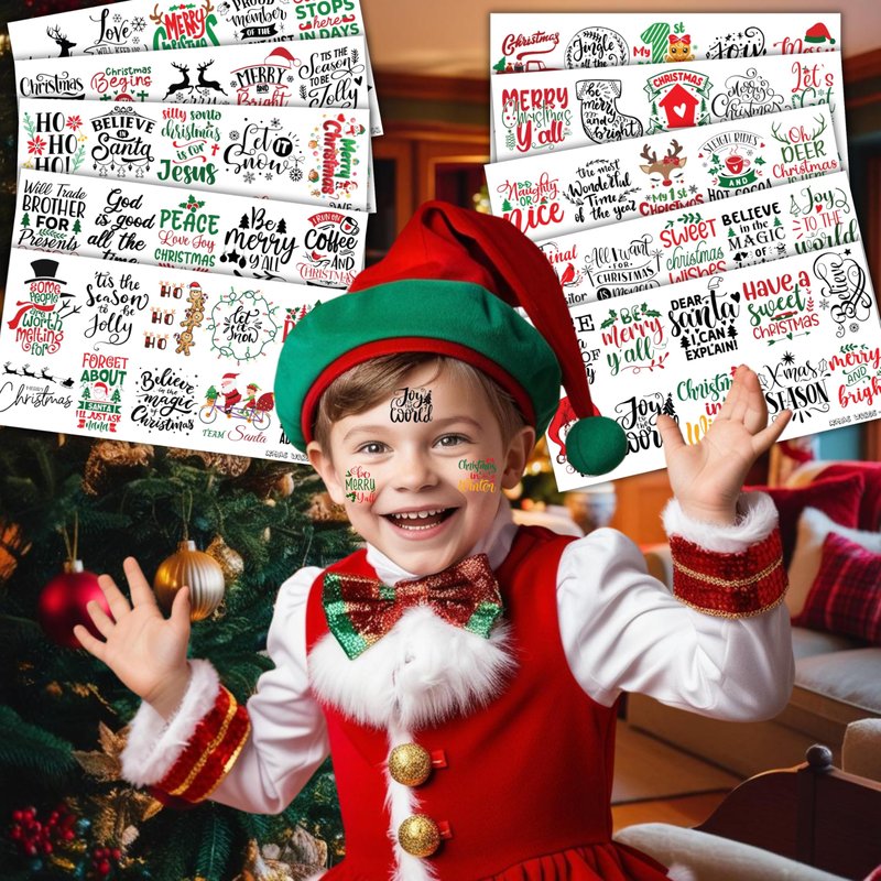 - 🎁【PERFECT TATTOOS FOR THEMED XMAS INSPIRATIONAL]: Xmas Inspirational Temporary Tattoo decals come in sets of 8 sheets, featuring a total of 100 intricate and captivating designs inspired by the Xmas season and holiday symbols. The collection includes Xmas Inspirational with classic Xmas elements, exquisite patterns, and rich designs, creating a perfect complement to the festive atmosphere. Each tattoo measures 6.1 * 3.1 inches, providing an ideal canvas for both kids and adults to proudly express their love for the holiday spirit on clothing, accessories, or as thoughtful gifts for holiday.