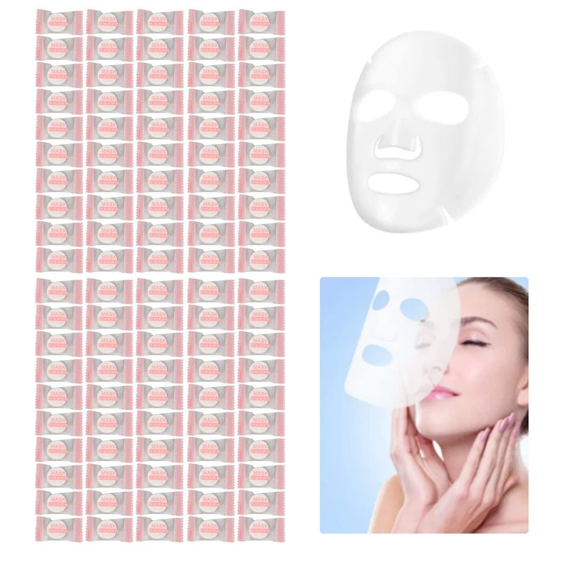 100pcs Compressed Facial Mask Sheet, Disposable Pure Cotton Facial Mask Sheets for Skin Care DIY Facial Wrapped Paper for Home Beauty Salon