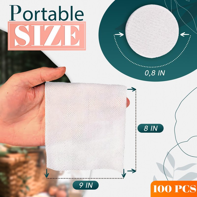 - Package Includes Disposable Compressed Towel: In our package of disposable face towels for drying face you will have 100 pieces of camping towels. These portable compressed face towels are all of the same size.