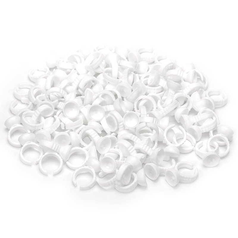 100PCS Disposable Plastic Nail Art Tattoo Glue Rings Holder Eyelash Extension Rings Adhesive Pigment Holders Finger Hand Beauty Tools (White)