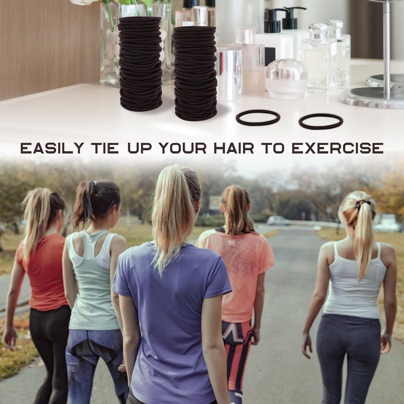 100PCS Hair Ties, 4MM Dark Brown Ponytail Holders Hair Bands, 2 Inch in Diameter Rubber Bands for Medium to Thick Hair, (4mm Dark Brown)
